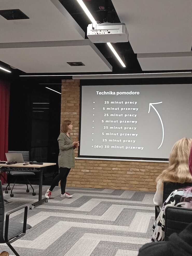 Nasza prelegentka Ania Józala z wielkim wdziękiem zaprezentowała słuchaczom przegląd najbardziej efektywnych form organizacji i pracy.